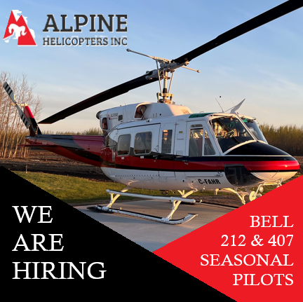 Alpine is accepting resumes from qualified Bell 407 and/ or 212 Pilots for summer 2026 seasonal contract opportunities. These are rotational field positions in support of Alpine’s summer operations, which include, but are not limited to, mining & resource support, forest fire suppression, forestry management support, mining & resource support, aerial power line support work, construction, etc..